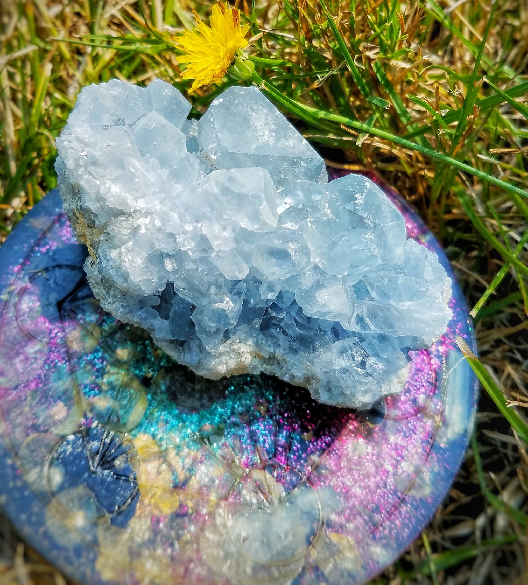 Celestite (or celestine) is an angelic stone that can connect to the angel realms and garner angelic wisdom. Its a great crystal for meditation, as it can block out surrounding noise and distractions.