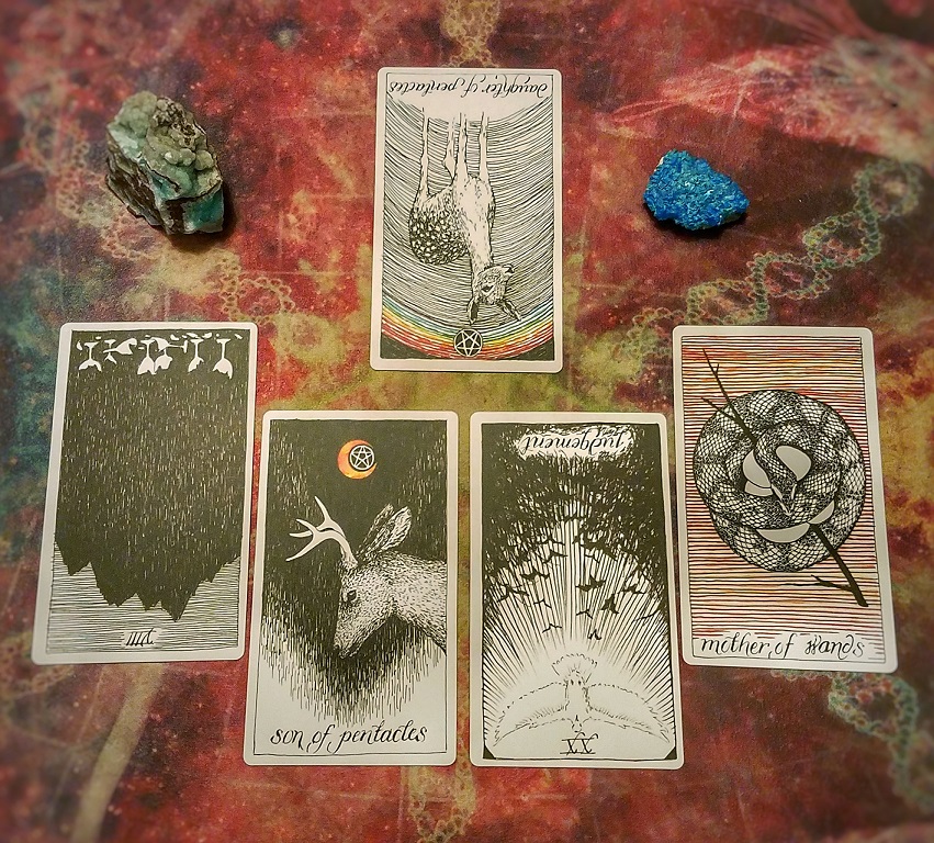 This is for a 5-card reading, known as the Connection Spread. This reading is best used to look into the dynamics between two people, whether that be a romantic relationship, professional, or platonic. Helps to provide guidance into any challenges between 2 individuals. You can choose between: The Starchild Tarot deck or The Wild Unknown Tarot deck.